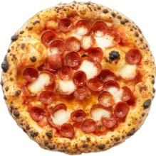 Tomato sauce, fior di latte, pepperoni, olive oil