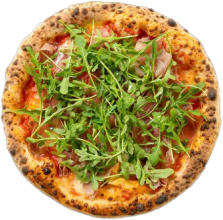 Tomato sauce, fior di latte, fresh organic arugula, prosciutto, olive oil
