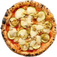 Tomato sauce, rosated zucchini, roasted eggplants, artichoke hearts, fior di latte